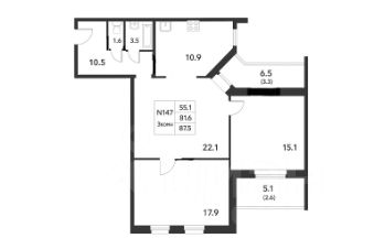 Квартира площадью 87,5 м2 с учетом площади двух лоджий. Лоджии можно утеплить и при желании присоединить. Окна на 3 стороны, что дает много света, пространства и потрясающие виды на город.