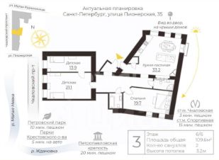 доступности. Транспортная развязка удобна: всего 8 минут пешком до станции метро "Чкаловская", а также близость станции "Спортивная" и набережной делают этот уголок Петербурга идеальным для жизни