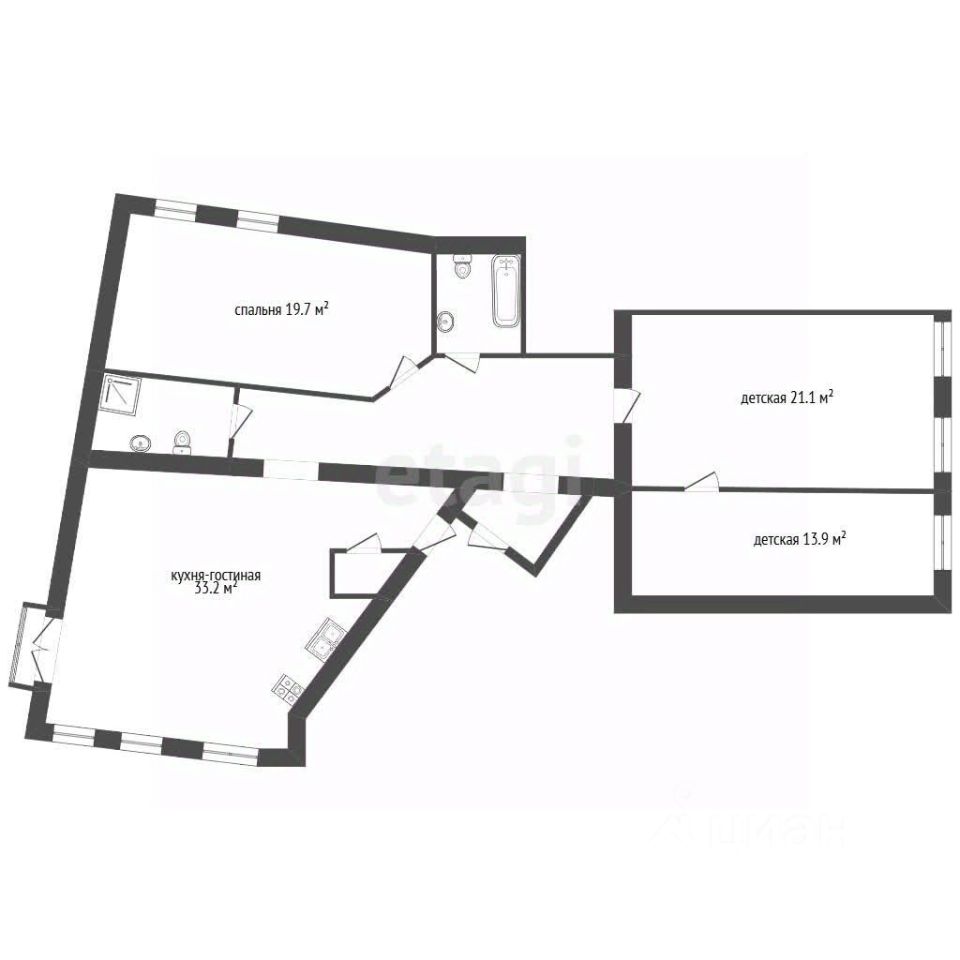 -- просторную кухню-гостиную площадью 33 кв. м