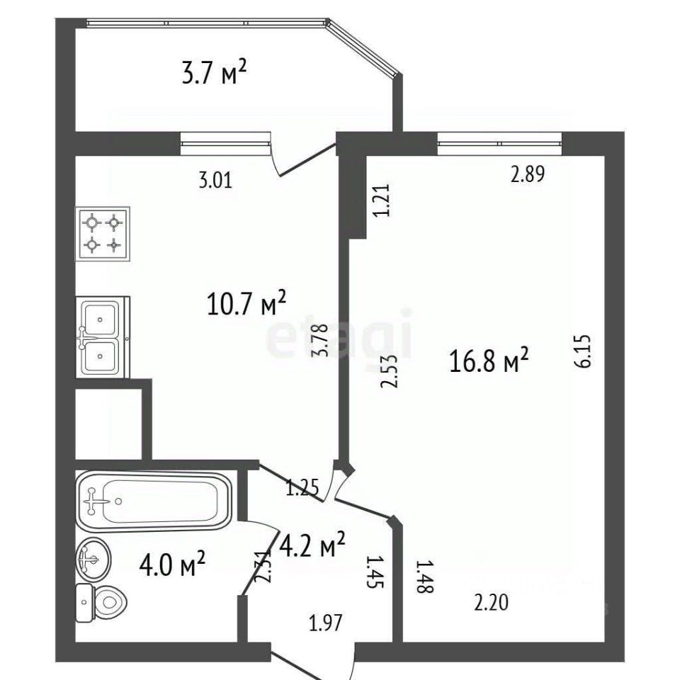 - общая площадь 35.7м2