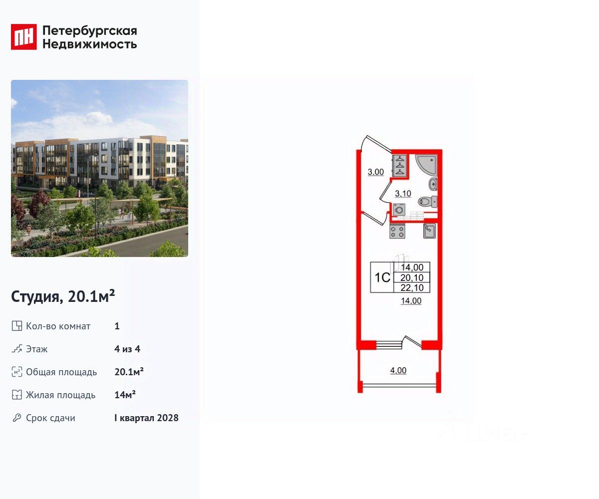 Продается уютная студия от застройщика в жилом комплексе "Univer City" в на юге Санкт-Петербурга.