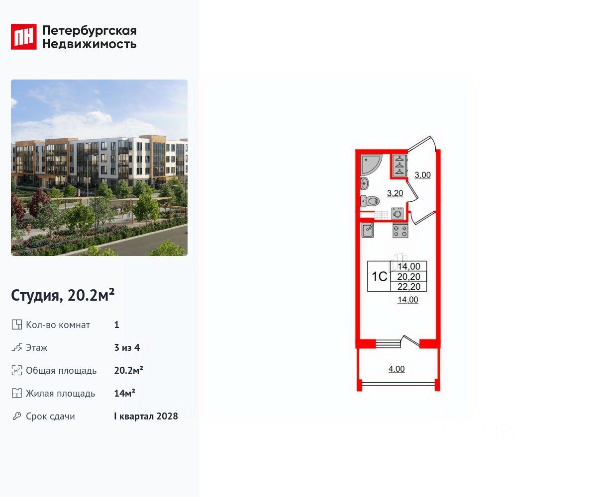 Продается уютная студия от застройщика в жилом комплексе "Univer City" в на юге Санкт-Петербурга. До метро можно добраться на транспорте всего за 30 минут. Удобная, классическая, функциональная европланировка, вместительная прихожая 3 м². Общая площадь студии - 20.2 м², жилая 14 м², высота потолка 2.78 м. Квартира продается с отделкой "Норд Лайн светлый". Что особенного в ЖК "Univer City"? • Малоэтажное строительство • Скандинавские фасады с отделкой керамогранитом, акцентные входные группы • Закрытые внутренние дворы без машин • Пешеходный променад с тематическими зонами, еловый сквер и яблоневый сад • Univer Park, включая SetlSport и SetlKids, площадку для выгула собак и зоны отдыха • Инновационный Лицей Setl с оригинальной архитектурной концепцией и уникальной образовательной средой
