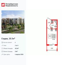 Удобная, классическая, функциональная европланировка, вместительная прихожая 3 м². Общая площадь студии - 20.3 м², жилая 14 м², высота потолка 2.78 м.