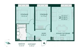 Квартира имеет отличную планировку: две изолированные спальни и огромная (25м2) кухня-гостиная, просторный сан. узел, все помещения правильной формы.