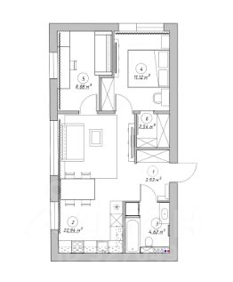 Просторная кухнягостиная 23 м² с обеденной зоной и зоной отдыха идеальна для приёмов и семейных ужинов.