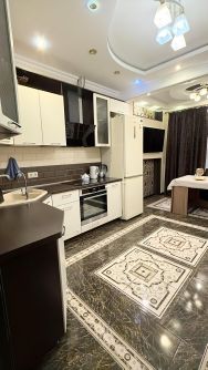 Просторная кухня плавно переходит в зону отдыха, что особенно удобно для современного ритма жизни. Санузел совмещенный и оснащен всей необходимой сантехникой.