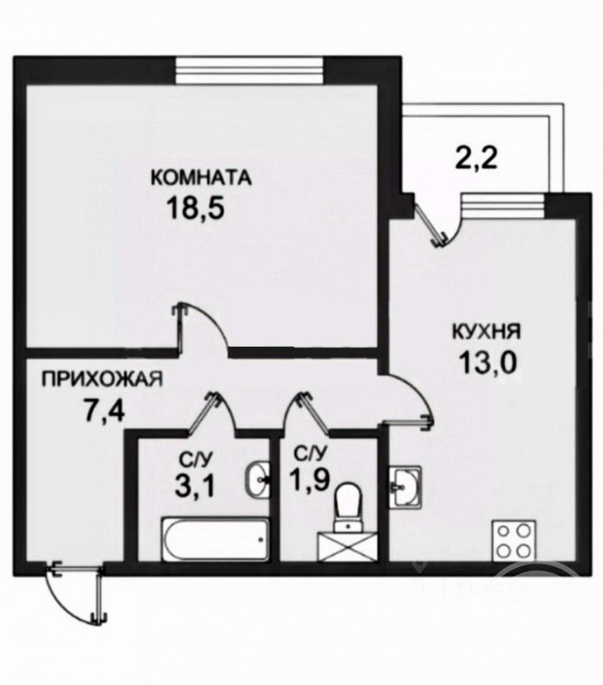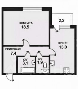 Планировка: Просторная кухня-гостиная (13 м²) для встреч с друзьями и отдельная комната (18,5 м²) для отдыха. Высота потолков 2,8 м — настоящая "сталинка" в современном доме.