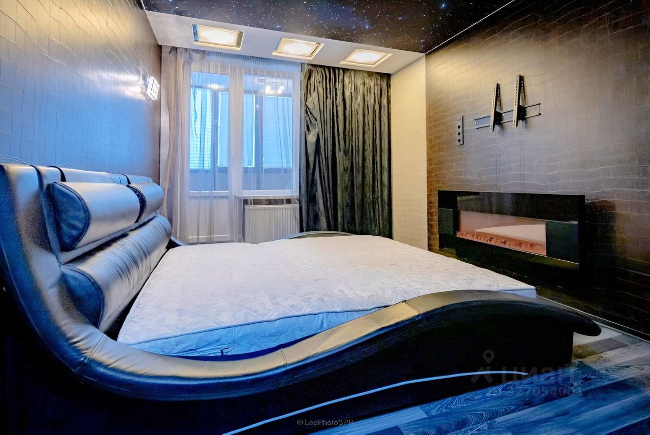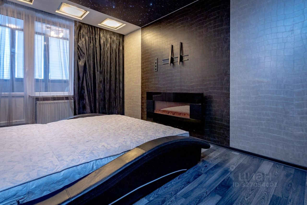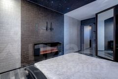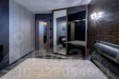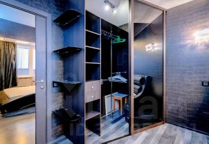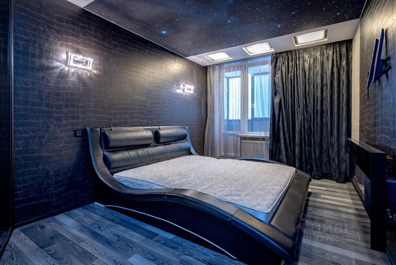 - Спальня (15.4 м²) с выходом на лоджию. В комнате установлена вместительная гардеробная
