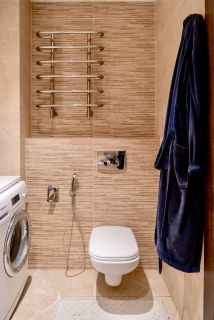 Совмещенный санузел (есть возможность установки второго; сейчас в месте санузла — гардеробная)