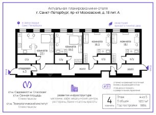 Вся необходимая инфраструктура расположена в пешей доступности, рядом находятся магазины, кафе, медицинские центры, рестораны, банки и салоны красоты.Рядом расположены несколько университетов Технологический университет и Суворовское военное училище.Так же в пешей доступности от метро Сенная площадь, Спасская, Садовая и Технологический институт, университет путей сообщения.