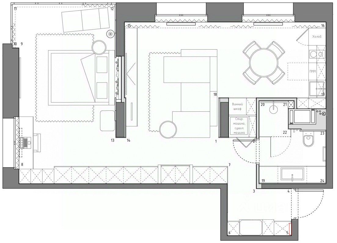 В квapтире сдeлан высокачественный дизайнерский ремонт. Кухня оборудована всем необходимым. В спальне панорамные окна. Подогреваемые полы во всей квартире с сенсорными датчиками. Вся техника остается новому владельцу: TV диагональ 75 см, маршал аудиоцентр, стиральная машинка и сушильная машинка, в том числе техника на кухне. В квартире огромное количество мест хранения для вещей, всё в зеркалах и панели открываются (скрытые шкафы). Квартира идеально подойдет для проживания одному человеку или паре.