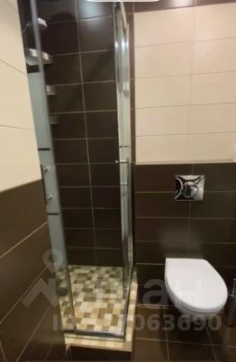 Стильный санузел: Современная сантехника, качественная плитка в шоколадно-бежевых тонах, установлена стиральная машина и инсталляция.