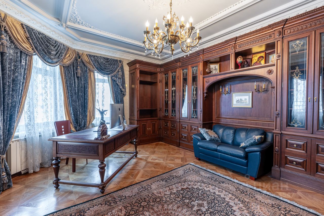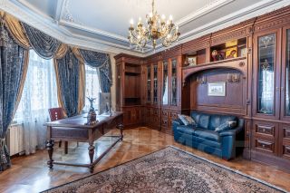 Мебель кабинета выполнен из ореха, и имеет множество приятных для хозяина секретов. Может использоваться как жилая комната.