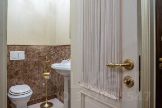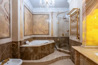 Главная ванная комната отделана мрамором, ониксом с подсветкой. Имеет встроенную гидромассажную ванну Jасuzzi, сантехнику Villeroy & Boch. Второй гостевой санузел оформлен в том же стиле.