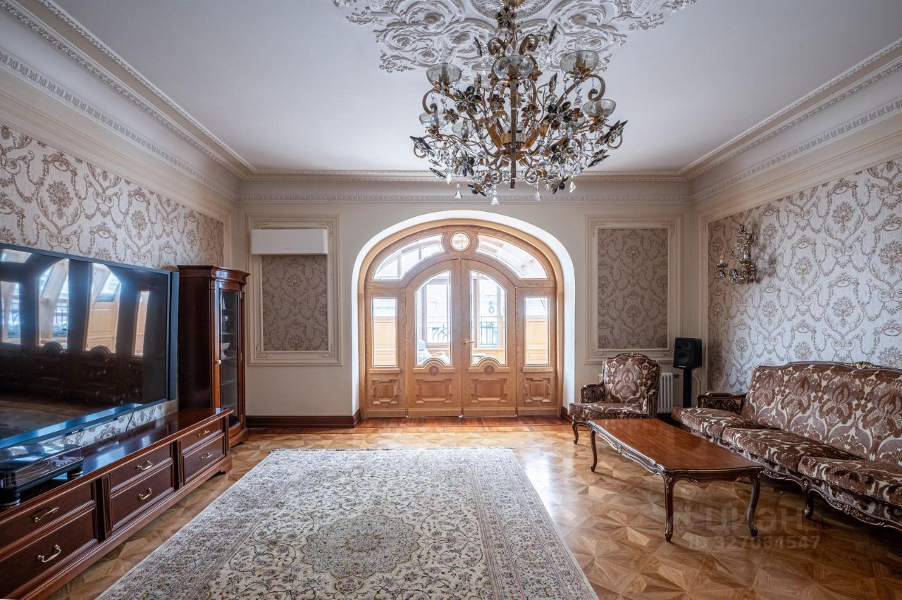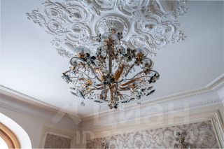 Интерьер выполнен в классическом стиле с применением натуральных материалов: мраморов, канадского дуба, ореха, бука, вишни. Потолки украшены лепниной из гипса. Двери выполнены из массива дуба, с магнитными замками и выпадающим порожком при закрытии, для лучшей изоляции помещений.