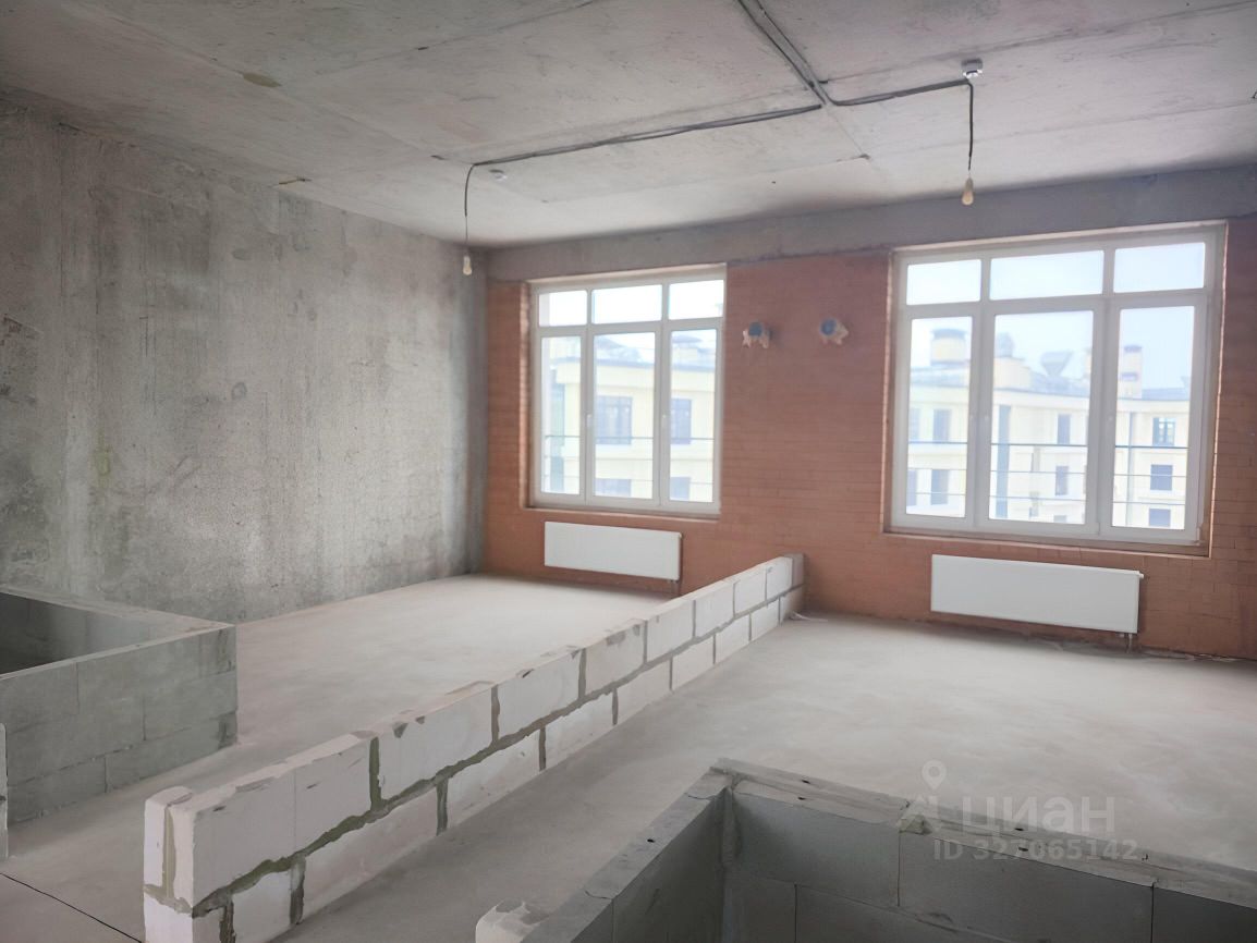 В квартире выполнена подготовка под отделку: сделана ровная стяжка пола, разведена электрика с розетками и выключателями, гидроизоляция в санузлах, установлены качественные двухкамерные стеклопакеты на окнах и прочная входная дверь. Высота потолков составляет 3,2 метра.
