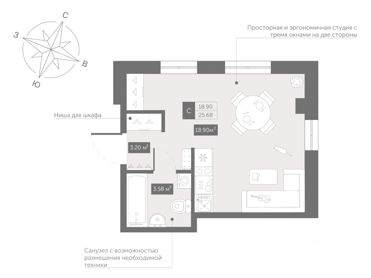 Цена со специальной скидкой в прямой продаже от застройщика — только в этом месяце. Апартамент-студия в комплексе класса бизнес-лайт Zoom Чёрная Речка на 8-м этаже. Общая площадь 25,68. Предчистовая отделка.