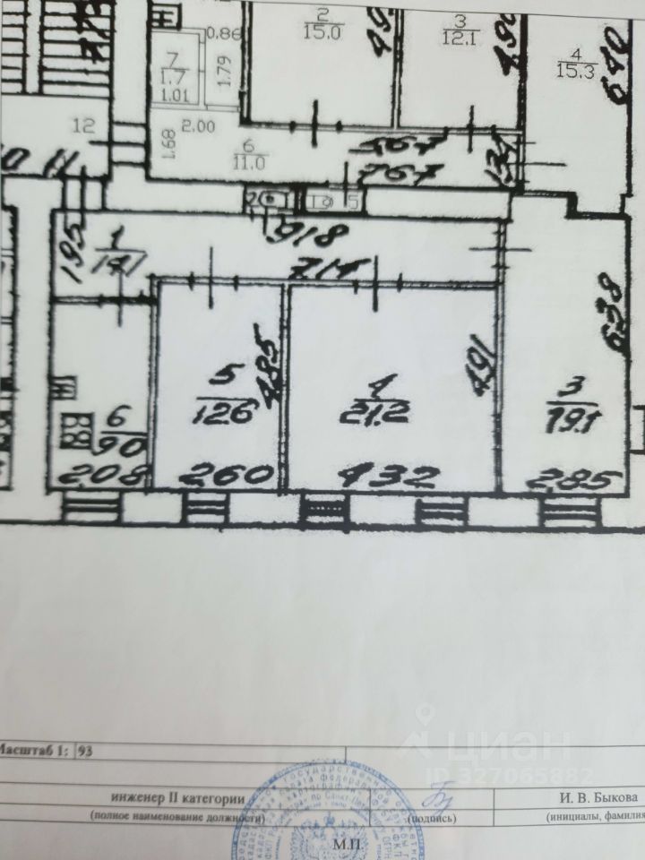 В одной комнате проживает пожилая женщина (площадь комнаты 12,6 кв. м.), вторая находится в собственности у города (площадь комнаты 21,2 кв. м., есть возможность выкупа).