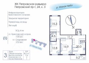 Продаётся роскошная респектабельная High Flat квартира с тремя спальнями на верхнем этаже в ЖК Петровская Ривьера - камерный дом бизнес-класса, от лучшего застройщика Северо-Западного региона RBI.