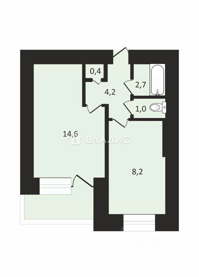 14,6 м²