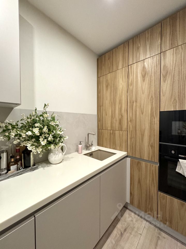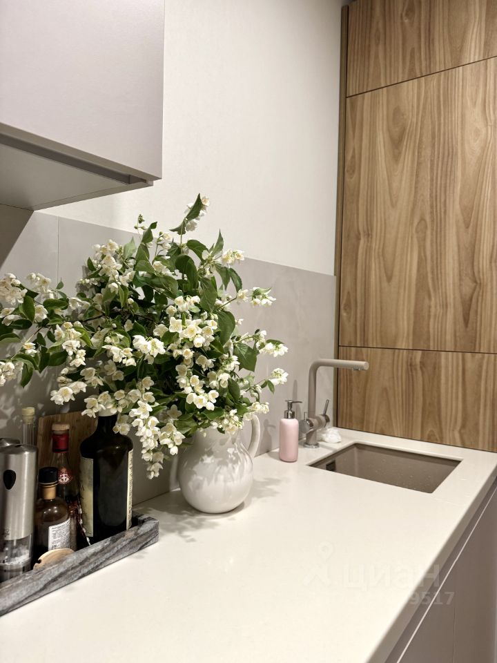 Аккуратный ремонт, всё функционально и удобно для жизни. Кухня качественная: каменная столешница, фасады из шпона, удобная рабочая зона и достаточное количество мест для хранения.