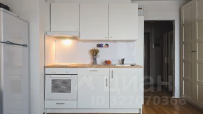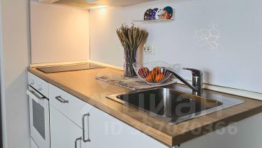 Зона кухни оборудована мебелью (ИКЕА), стеклокерамической варочной поверхностью и духовым шкафом.