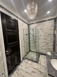 Сделан дорогой ремонт по дизайн проекту. На полу в прихожей и коридоре - мрамор, во всех комнатах дубовый паркет (сейчас застелили ковролином) ; Кухонный гарнитур hacker с техникой Miele; диван и стол фирмы Longhi; в санузле пол и стены из мрамора, душевая кабина huppe , сантехника Kohler, duravit, Ванна Victoria Albert; Гардеробная и шкафы выполнены на заказ.