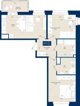 Жилой комплекс "Новатория", 1 очередь строительства, Корпус Б, Квартира 287 общей площадью 58,83 м2 на 2 этаже.ЖК "Новатория" —жилой комплекс комфорт-класса расположен в поселке Новоселье, в окружении леса и Шунгеровского заказника.