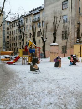Большой двор с детской площадкой-редкость для домов в центральном районе города.