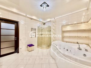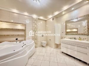 ВНУШИТЕЛЬНАЯ ванная комната с ДЖАКУЗИ и душевой кабиной, а также ТЕПЛЫМИ полами. На стенах и полу выложен КАЧЕСТВЕННЫЙ КЕРАМОГРАНИТ, потолки натяжные со встроенными LED-светильниками. Установлена ДОРОГАЯ сантехника от европейских производителей.