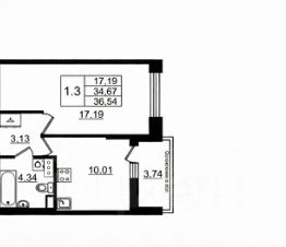 Однокомнатная квартира на 9 этаже (корпус 2, секция 2).