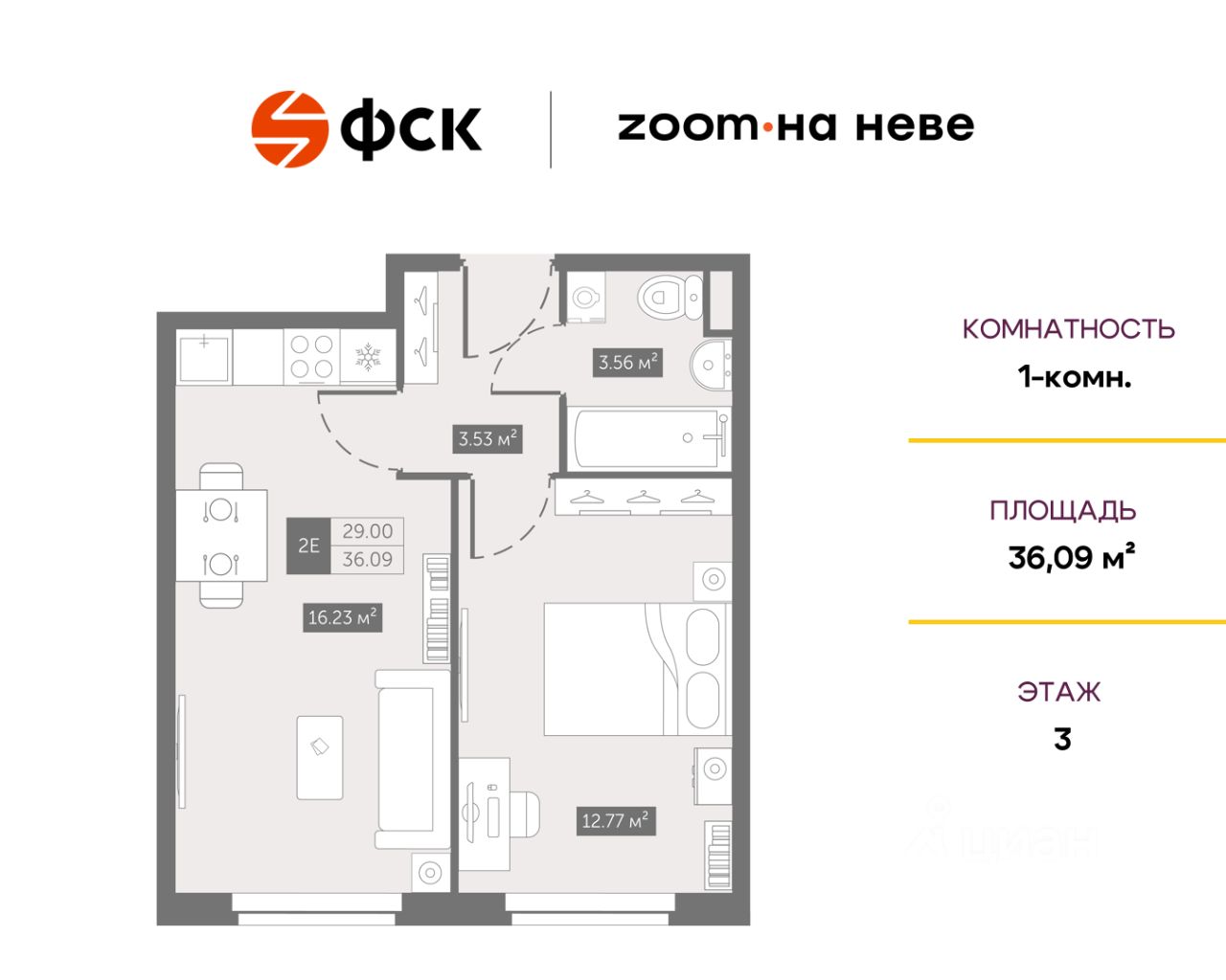 Цена со скидкой до 30% в прямой продаже от застройщика — только в этом месяце. При покупке апартаментов - паркинг за полцены. На все апартаменты действует беспроцентная рассрочка. Купите на распродаже! Покупка недвижимости в Zoom на Неве сейчас со скидкой до 30% позволит через 2 года получить доход до 6 300 000 руб. Роскошные виды на Неву. 1-к апартамент в комплексе класса бизнес-лайт Zoom на Неве на 3-м этаже. Общая площадь 36,1. Предчистовая отделка.