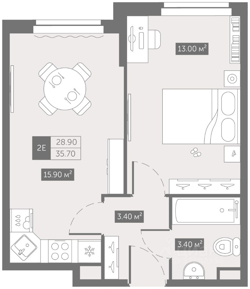 - Доступно 3 варианта отделки на выбор: черновая, предчистовая (White Box) и чистовая;