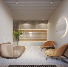 - Парадный лобби для жильцов. Единый вход в комплекс с администратором, зоной ресепшн и охраной, зоной для бесконтактной доставки посылок и еды;