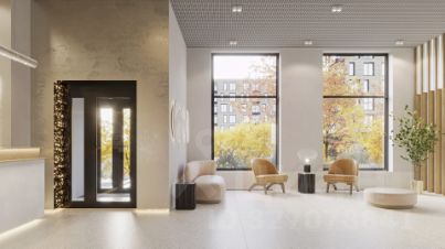 - Парадный лобби для жильцов. Единый вход в комплекс с администратором, зоной ресепшн и охраной, зоной для бесконтактной доставки посылок и еды;