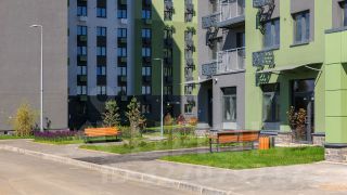 Между домами будут устроены бульвары, пешеходные и велодорожки, игровые и спортивные площадки, зоны отдыха для детей и взрослых. На первых этажах находятся колясочные, магазины, кафе и сервисные службы.