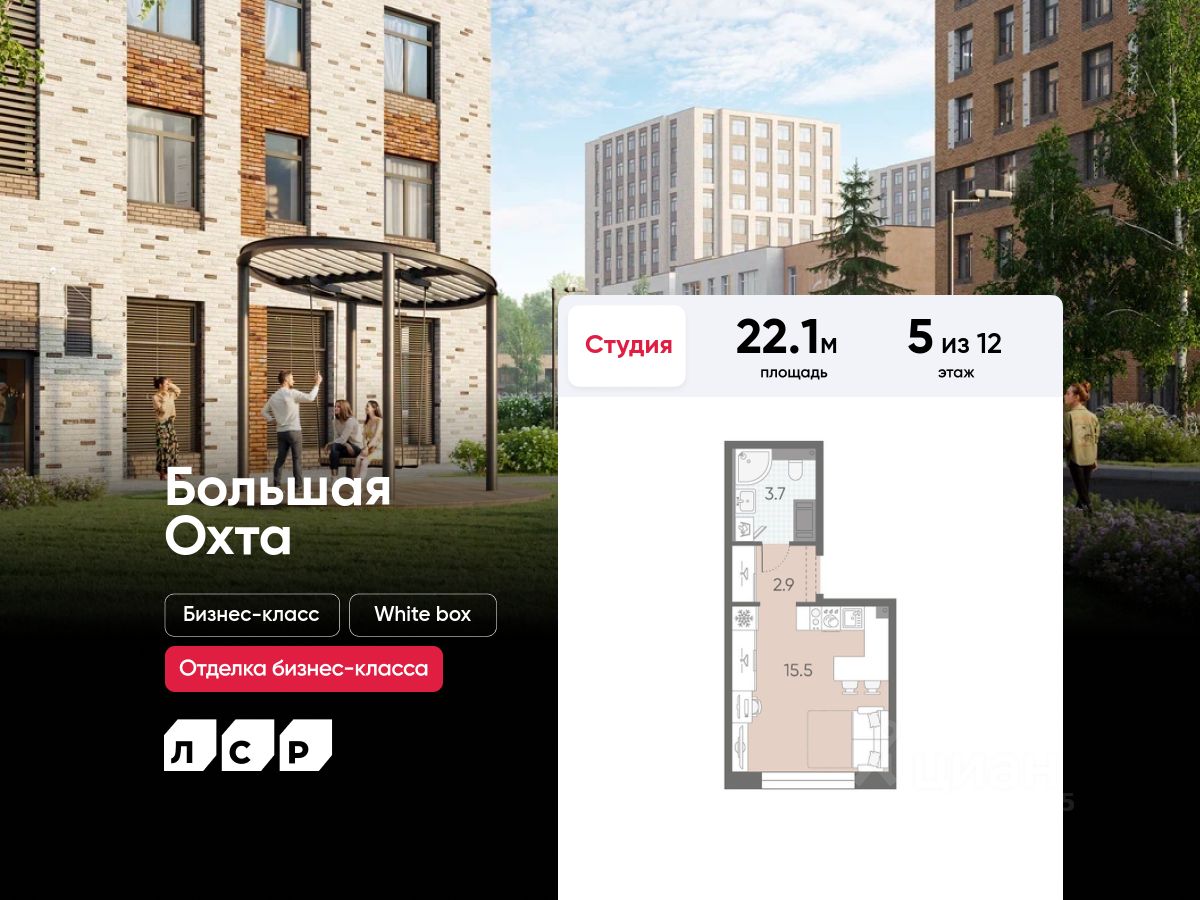 Цена действует при 100% оплате и на определенные ипотечные программы. Подробности — в отделе продаж по телефону. Продаётся студия в ЖК "Большая Охта" на 5 этаже. Общая площадь составляет 22.10 кв. м. Квартира с white box отделкой. Жилой комплекс "Большая Охта" располагается по адресу Санкт-Петербург, Красногвардейский. "ЛСР. Большая Охта" - проект бизнес-класса, в Красногвардейском районе между Якорной и Партизанской улицами, рядом с центром Петербурга. Престижный комплекс с удобной пешеходной и транспортной доступностью. Особенности квартиры высокие потолки и увеличенные окна. Горизонтальная разводка труб водоснабжения и отопления и вынесенные в холлы счетчики сохранят эстетичный дизайн комнат. Встроенные клапаны инфильтрации воздуха будут поддерживать чистоту и свежесть воздуха. Расположение: • 8 мин на авто до станции метро "Новочеркасская"; • 10 мин на авто до станции метро "Ладожская"; • 10 мин на авто до Таврического сада и исторического центра города; • 13 мин на авто до станции метро "Чернышевская"; • 25 мин на авто до КАД. Пространство внутри комплекса разделено на функциональные зоны: тематические, спортивные, уединенные. Все площадки окружают взрослые хвойные и лиственные деревья, подобранные с учетом роста, эстетики и сезонного цветения. Расширенная инфраструктура комплекса продумана до мелочей. Внутри квартала есть все необходимое для жизни с комфортом и удовольствием - детские сады и школы, магазины, площадки для спорта и отдыха, фитнес-залы, модные кофейни и общественные летние веранды. Преимущества: • Подземный паркинг и кладовые помещения; • Двор без машин; • Система "Умный дом" (в т.ч. управление домофоном со смартфона); • Пост охраны и консьерж; • Индивидуальный тепловой пункт; • Колясочные в каждой парадной; • Зарядка для электромобилей. Успейте приобрести квартиру на выгодных условиях! Чтобы узнать подробности, обращайтесь за консультацией по телефону.