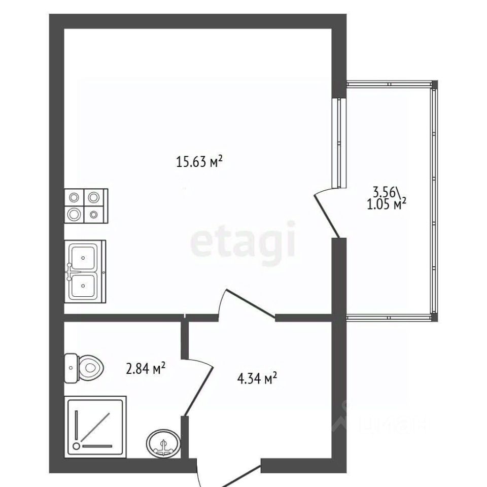 Студия площадью 22,9 кв. м на 10 этаже монолитного дома (2024 год постройки).
