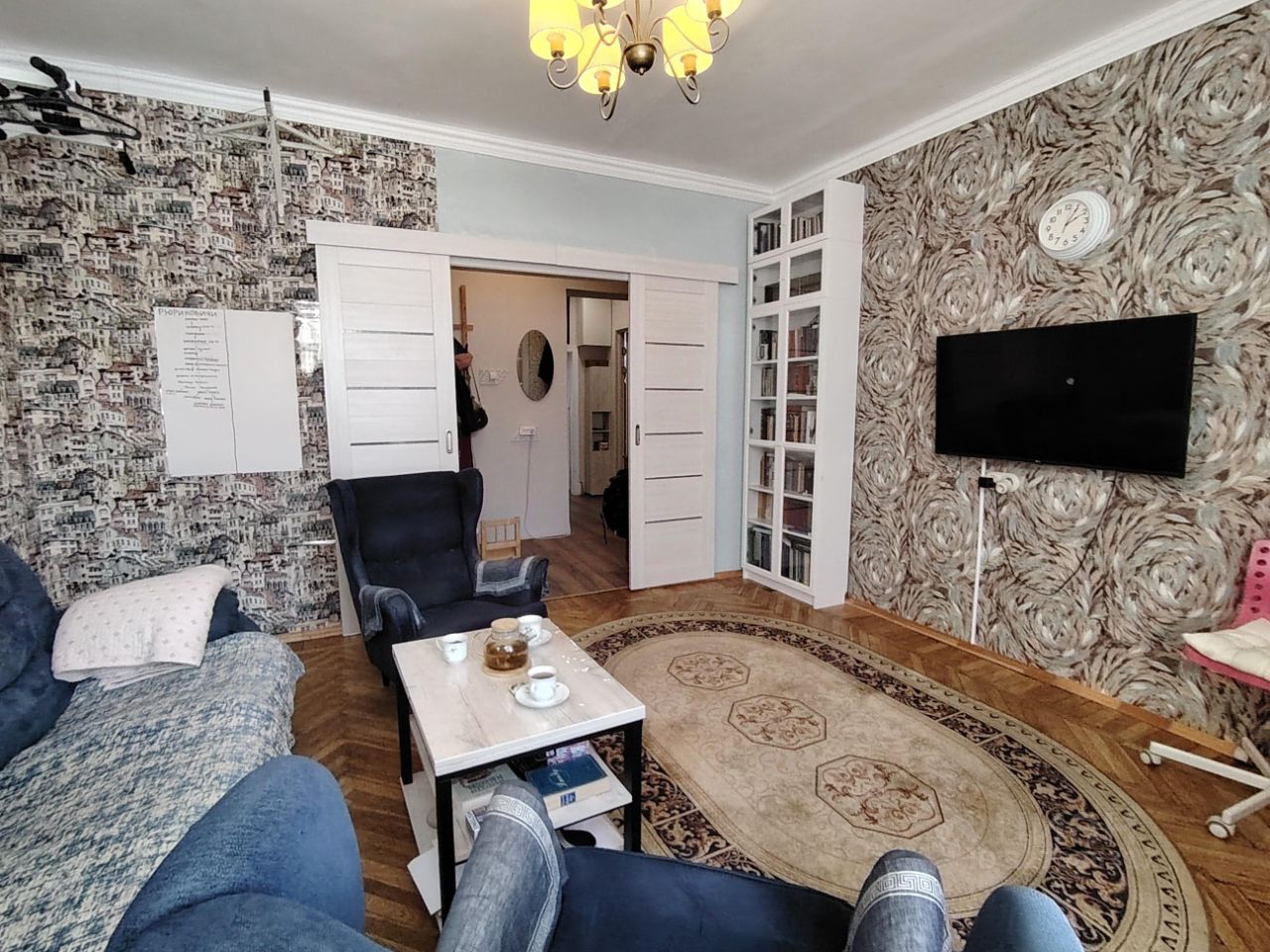 Квартира достается покупателю практически пустой, что позволит воплотить множество дизайнерских решений. Остается лишь встроенная кухня, вытяжка и газовая плита с электрической духовкой, два кондиционера, роутер и шкаф в детской.