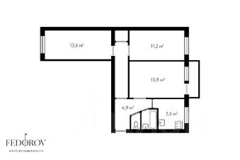 Три изолированные комнаты - 13,6 м², 11,2 м², 13,8 м², кухня - 5,6 м². Раздельный санузел, застекленный балкон. Окна выходят во двор - в квартире нет шума от дорог. Идеально подойдет как семье с детьми, так и тем, кому важно иметь отдельную комнату под кабинет.