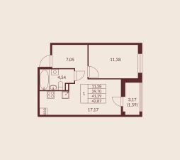 Общая площадь41,29 м²