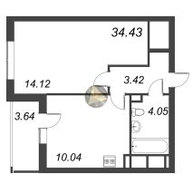 - Общая площадь квартиры 34.43 м2