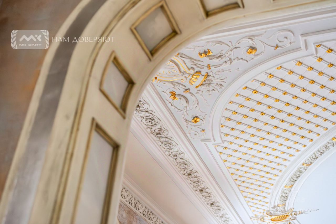 Квартира занимает барский третий этаж, с фасадной части украшена двумя изящными балконами и эркерами. Высокие потолки с отреставрированными вручную историческими элементами, геометрия окон придает интерьеру подлинность и благородство.