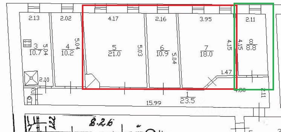 комната 1: 21 м2;