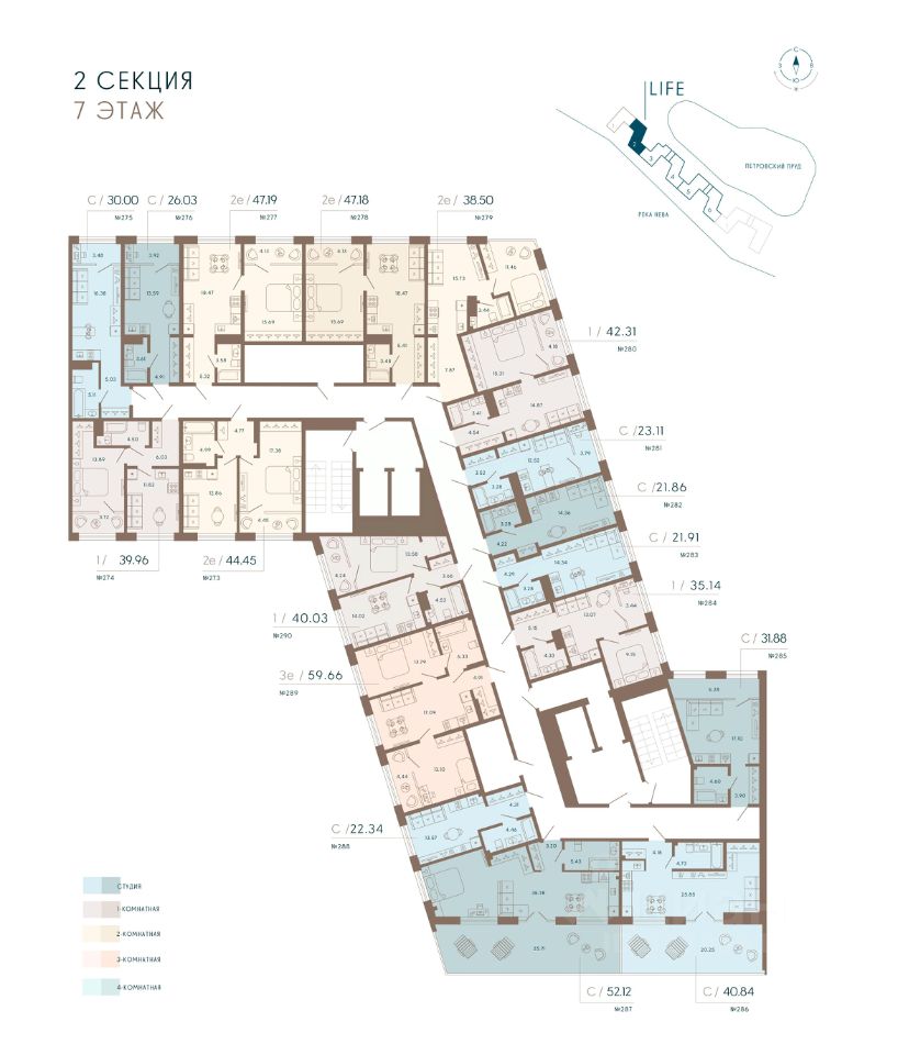 100% видовых апартаментов. Виды на Малую Невку, на Петровский пруд.;