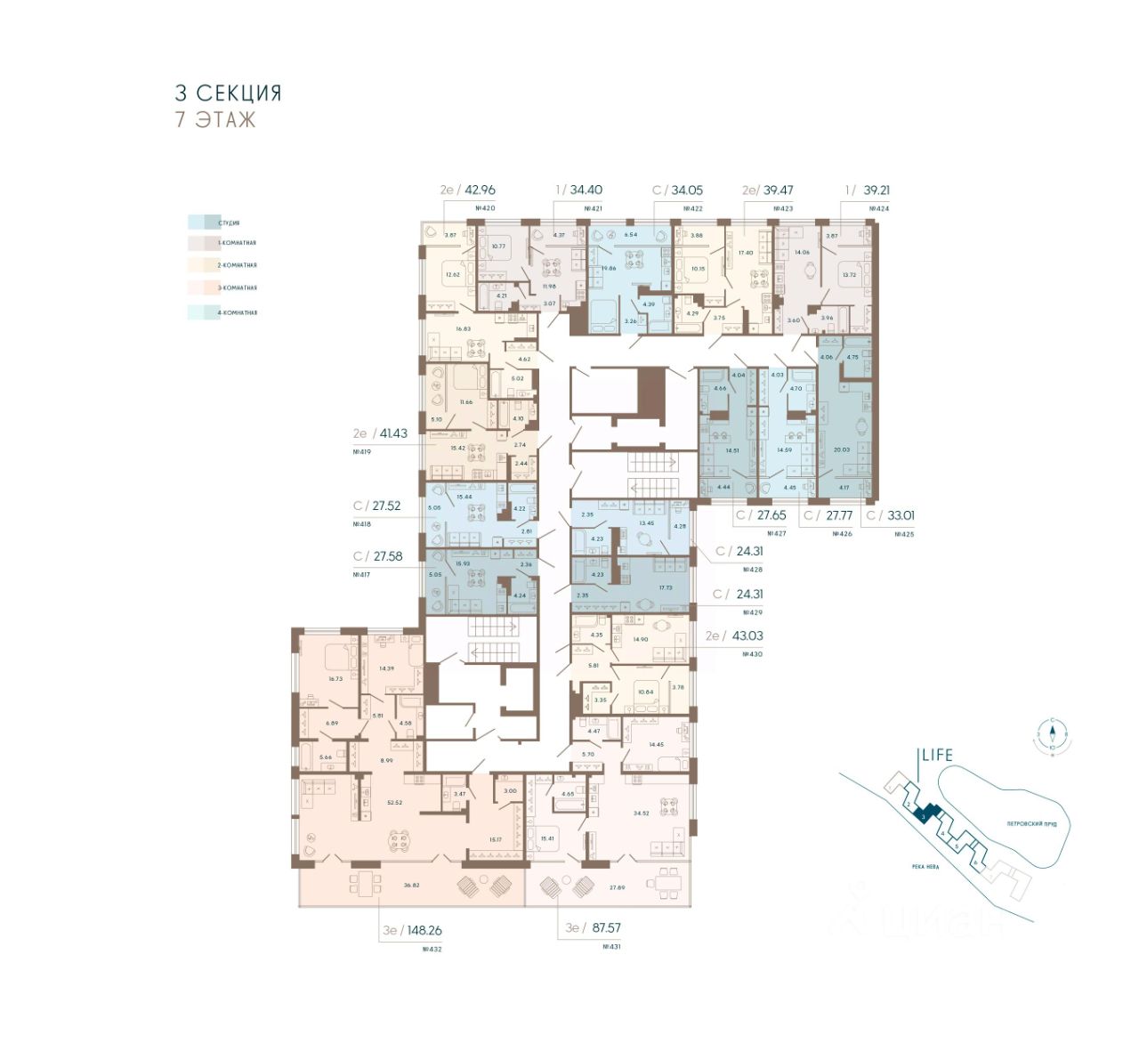 Апартамент 422 в Комплексе "17/33 Петровский остров"