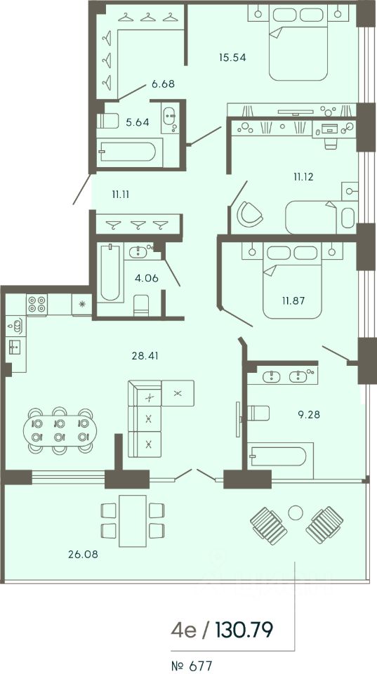100% видовых апартаментов. Виды на Малую Невку, на Петровский пруд.;