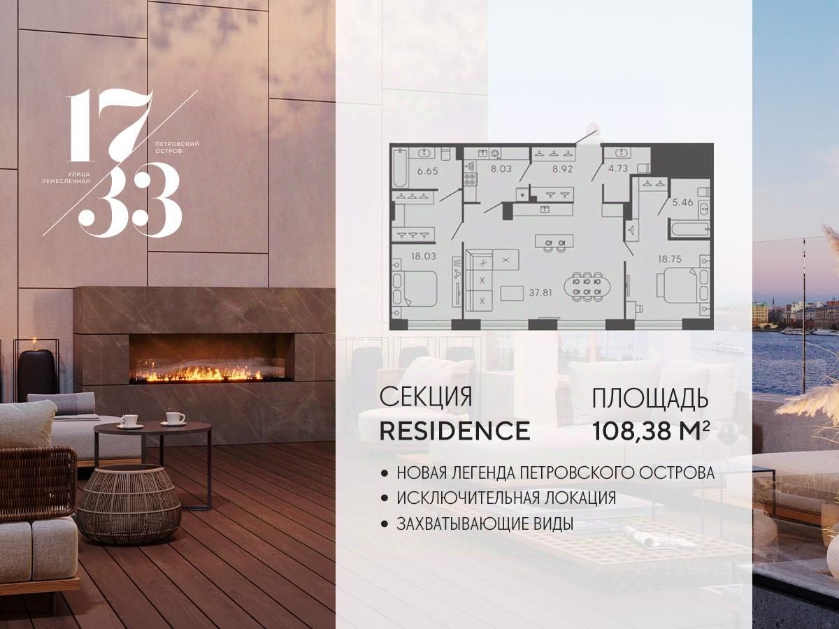 Апартамент 824 в Комплексе "17/33 Петровский остров"