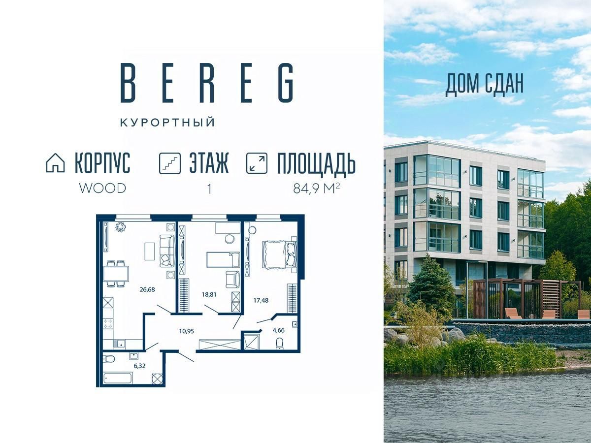 "Bereg. Курортный" первый проект петербургского девелопера ELEMENT (ранее Element Development) в Санкт-Петербурге, который был сдан в мае 2024 года. Малоэтажный проект расположен в тихой части Сестрорецка, в окружении парков "Гагарка" и "Дубки", на берегу живописного канала. В составе комплекса три корпуса: AIR, AQUA и WOOD ("Воздух", "Вода" и "Дерево"), которые включают 715 апартаментов, в том числе юниты с террасами-патио на первом этаже. Комплекс обеспечен всей инфраструктурой для комфортной жизни от детского клуба до собственной спа-зоны с бассейном, сухой сауной и тренажерным залом. "Курортную" атмосферу поддерживают концепция "двор без машин", перголы для отдыха, детские площадки в стиле "эко", променад на набережной с "островками" для медитации, а также зеленое благоустройство от Derevo Park на 28 000 растений.