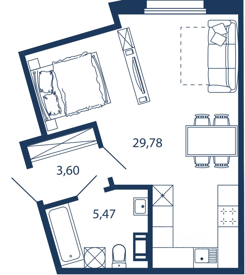 Апартамент 574 площадью 38,85 кв.м. в корпусе Wood с видом во двор